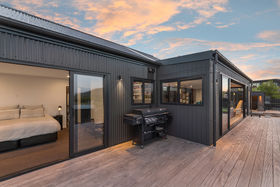 This three-bedroom and two-bathroom home has been crafted to the highest standards with deluxe features including, butler's kitchen with view, office, primary bedroom with walk in robe and en-suite, zoned air-conditioning, underfloor heating, Belling Deluxe Cooker, Woodsman Serene wood burner, argon gas filled thermal glazing, timber flooring, and insulated to the highest standards. The detached media room/bar, spacious deck and patio, and spa pool complement this stunning home, holiday home or luxury holiday accommodation rental.